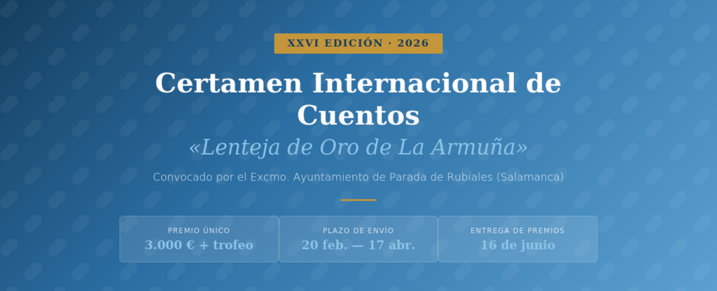 El Certamen Internacional de Cuentos «Lenteja de Oro de La Armuña» es una de las citas literarias más consolidadas del panorama cultural salmantino. Desde su primera edición en el año 2000, este concurso organizado por el Ayuntamiento de Parada de Rubiales ha crecido hasta convertirse en un referente para escritores de toda España y del ámbito internacional, recibiendo en sus mejores ediciones cerca de 600 originales.